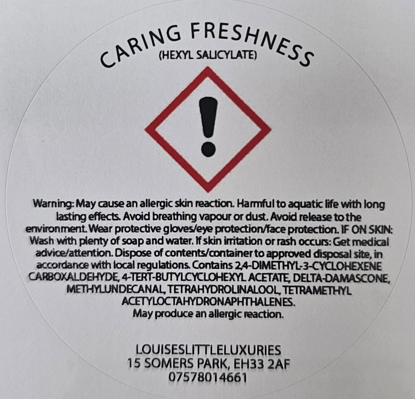 All my products are CLP compliant to ensure all products are labelled with any allergens, and I am fully insured.